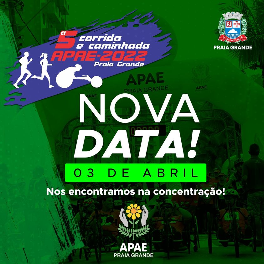 A APAE de Praia Grande informa que a 5 Corrida e Caminhada será realizada no dia 03/04/2022.Com largada para PCD às 6h55 e largada geral... [leia mais]