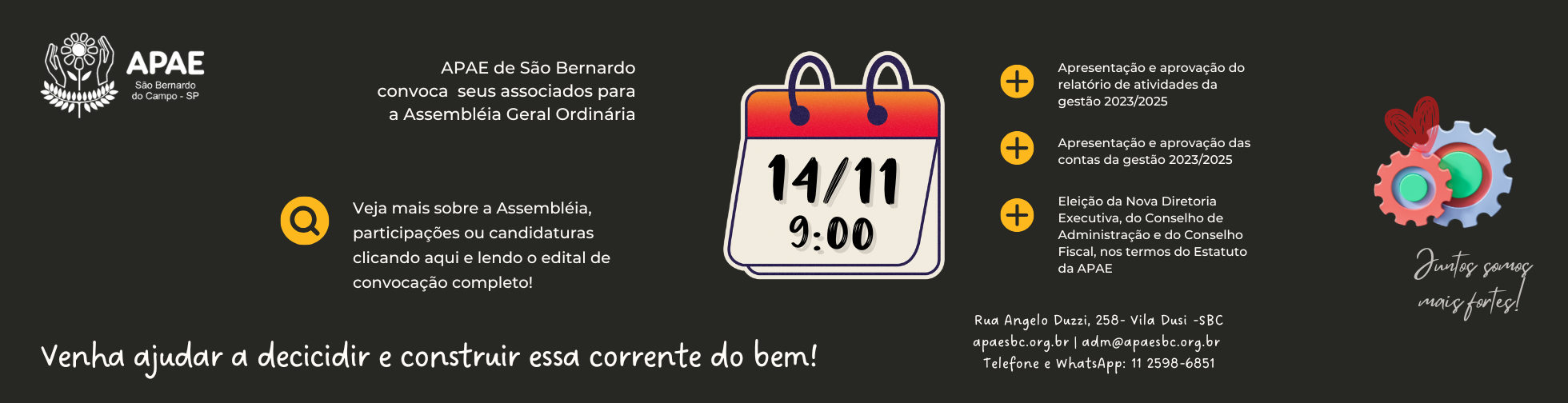 APAE SBC convoca seus associados para Assembléia Geral Ordinária